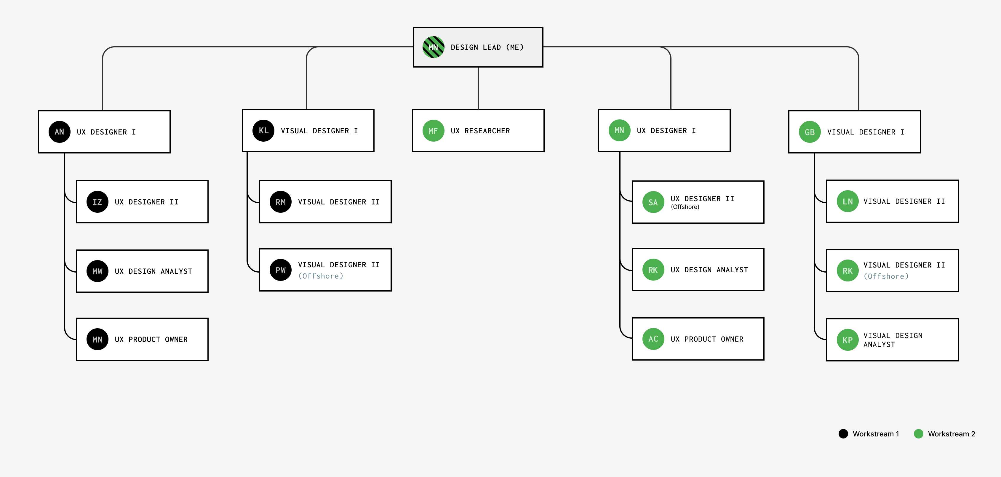 Once the team began to expand, I began interviewing possible candidates. It was important to find designers that were not only best for the job, but best for each other as well. I carefully listened to each designer's past experiences, their strengths and the areas in which they were interested in growing. Then followed a small game of musical chairs as I reorganized talent into the roles that made the most sense for the success of the project. Each designer also had the opportunity to support in areas they were looking to grow, and take on leadership responsibilities as they established best practices within their areas of expertise.
